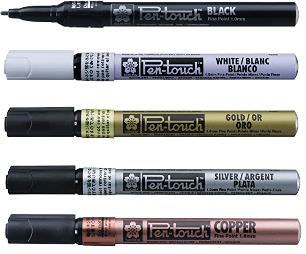 Lápices metálicos Pentouch ideal para escritura para todo tipo de superficie y dar un acabado metálico real (colores plata, cobre, dorado, blanco y negro).